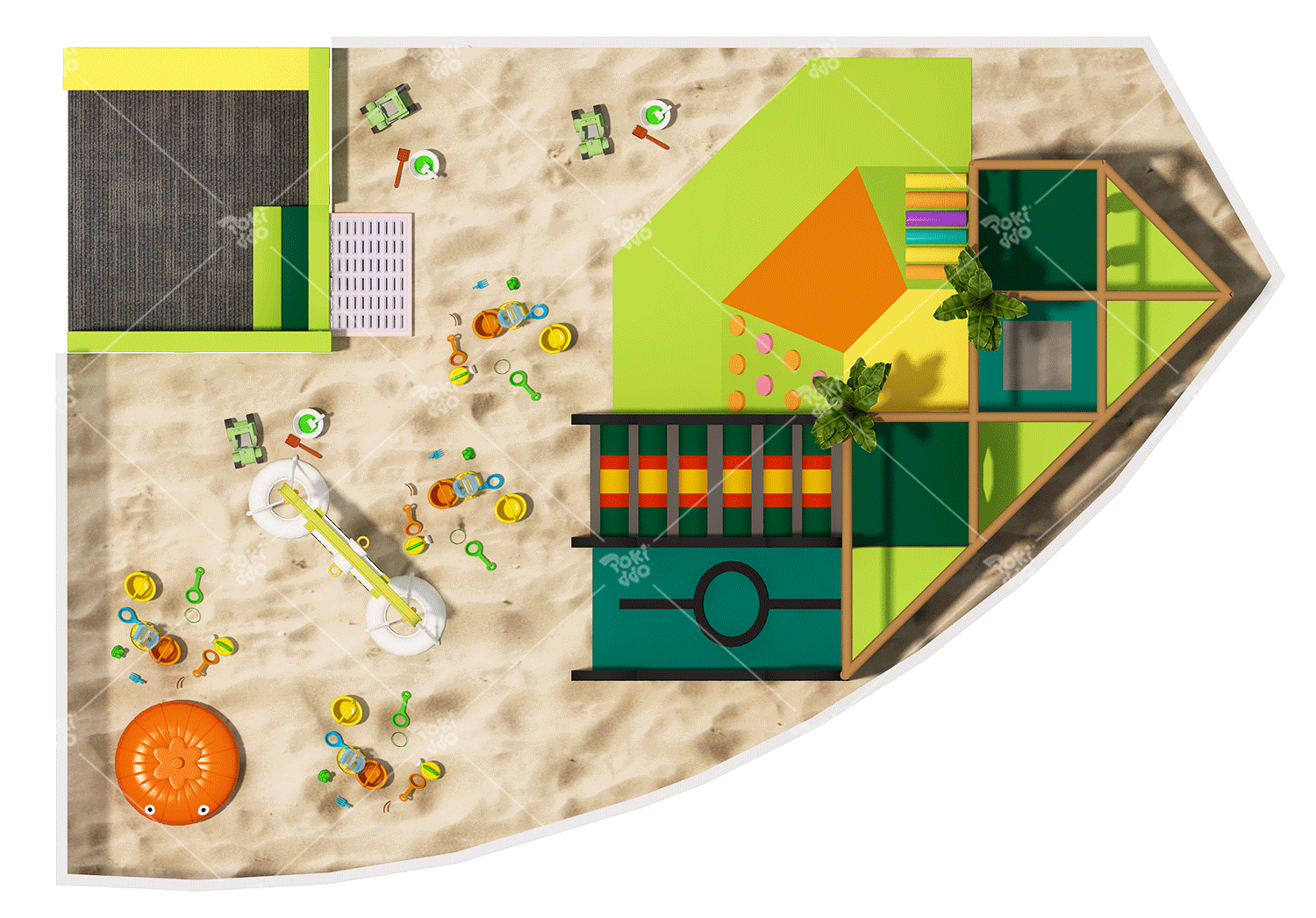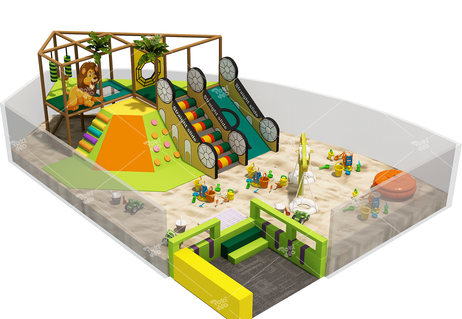 Sand & Safety: Sanitized fine sand (1mm round grains, dust - free, skin - friendly) fills the pit, enclosed by 60cm green soft barriers (sand - containment).